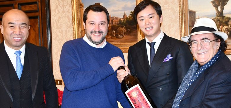 马泰奥·萨尔维尼(Matteo Salvini)接见了罗美雅集团董事长陈茂国(Luis Chen)、欧洲流行乐天王阿巴诺(Albano)及龙采科技集团董事长杨春波